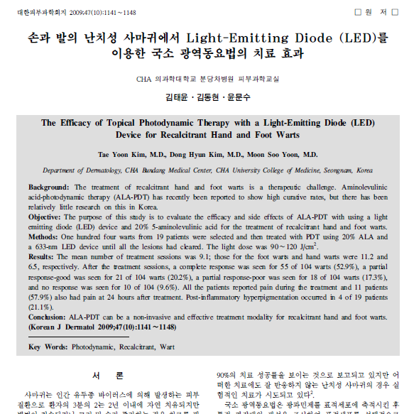 손과 발의 난치성 사마귀에서 국소 광역동요법의 치료 효과